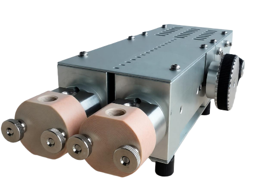 Насос состоит из двух пар параллельных насосных головок, которые обеспечивают высоконапорный, низкопульсирующий, синхронизированный и точный поток жидкости.