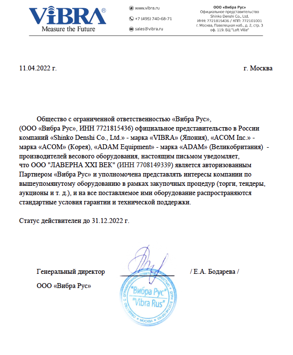 Компания «Лаверна XXI век» является авторизованным партнером компании ViBRA.